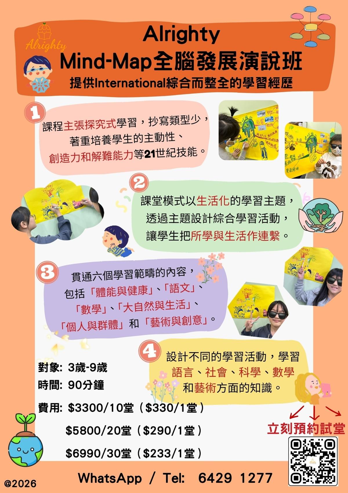 Alrighty Mind-Map 全腦發展演說班,為3-9 歲兒童提供國際化綜合學習體驗,以思維導圖為核心工具,在探究式學習中激發孩子主動性、創造力與解難能力,全面啟發全腦潛能✨